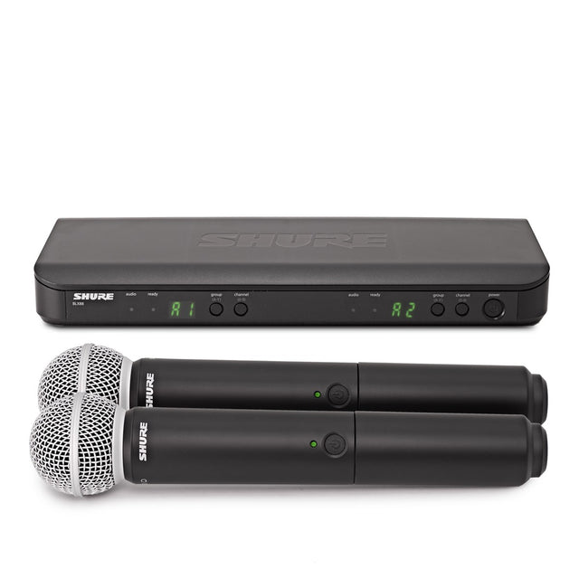 El BLX288/SM58 es un sistema de micrófono dual inalámbrico que ofrece toda la calidad que espera de un SM58. Sonido icónico, construcción resistente para giras, pero ahora es verdaderamente libre cuando actúa. Y con el receptor dual BLX88, puede utilizar ambos SM58 al mismo tiempo. Es perfecto para cantantes y oradores públicos.